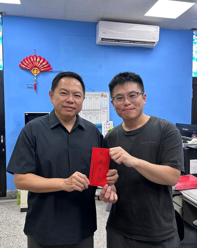 當日,吉安警分局仁里派出所接獲通報,有一輛自小客車於吉安鄉中山路二段發生擦撞後逃逸。正當線上警力全力展開攔查時,第一組休假警員陳致勝正巧路過附近,敏銳察覺一輛車頭嚴重毀損的轎車形跡可疑,且駕駛人神色慌張,正準備招攬計程車離去。陳員見狀顧不得休假身分,立即上前攔阻並進行盤問,拖延嫌犯時間待支援警力到場。