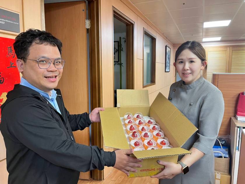 董椿霳表示,醫護人員無論日夜、始終堅守崗位,承擔極大壓力與責任,是社會最重要的守護力量。「希望透過這份小小的甜點,讓他們在忙碌之餘,感受到來自社會的溫暖與感謝。」