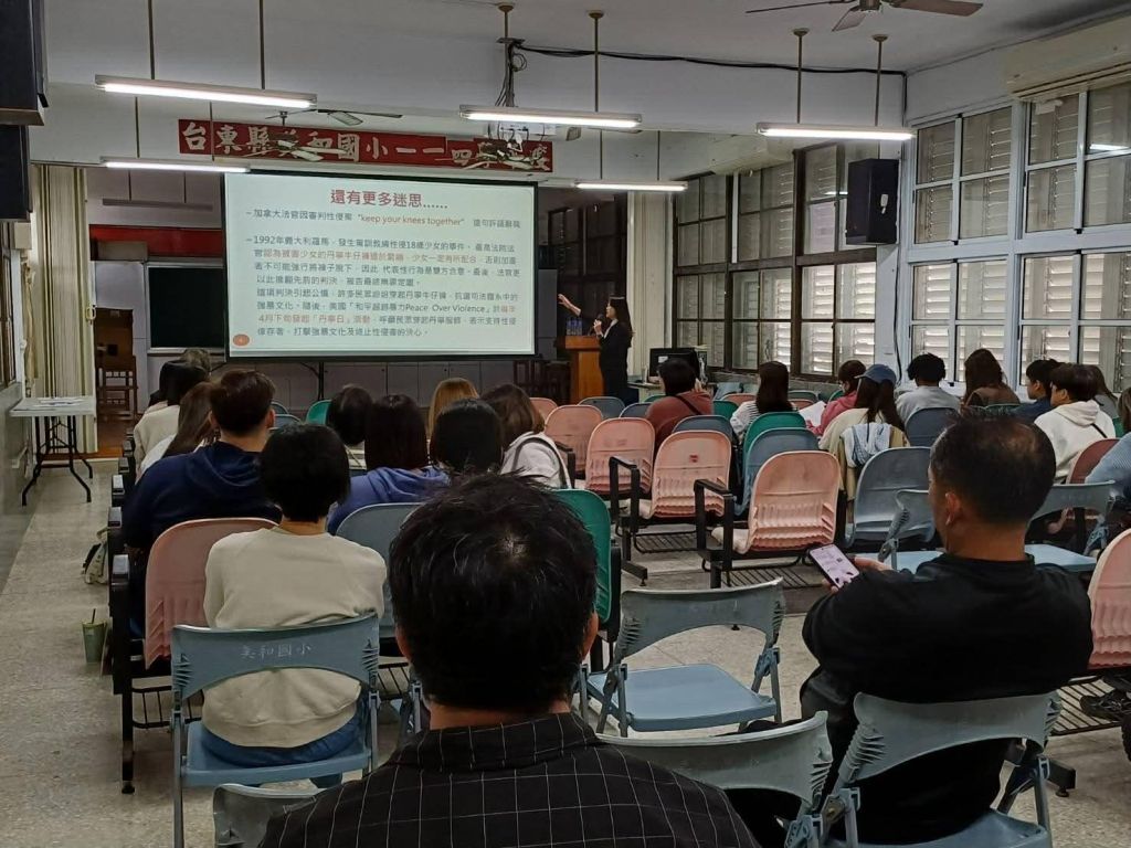 臺東縣警察局婦幼警察隊隊長余麗娟日前受邀參加美和、大王及大溪等國民小學聯合舉辦教師研習,講授「性平三法與性別平權」,透過相關法令及實務解析,加強學校教育人員對性平三法的認知、解構性別不平等的錯誤觀念及防治性騷擾的惡意行為;另也提醒有關網路交友陷阱,避免性私密影像遭外流等宣導,共同關注網路安全及拒絕性影像的學習環境,以防制數位性別暴力情事發生。