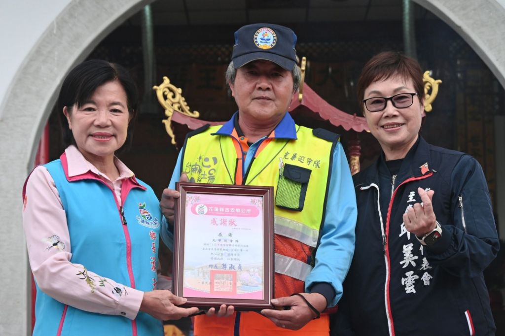 吉安鄉公所於今(28)日上午,在慈雲山懷恩堂前廣場辦理清明節祈福護靈普渡法會,現場祭祖人潮湧現千餘鄉親絡繹不絕,家屬們自備供品隨同公所法祀典儀祭拜祈福,傳承慎終追遠傳統美德。鄉長游淑貞親頒感謝狀,感謝勝安宮長期協力環保祭祀理念,年年無償提供千盞心燈祈福;同時感謝仁里、北昌、太昌、勝安、南宜昌、稻香、光華各巡守隊,分工承擔法會交通維安及懷恩祭祖清明時期之安全引導工作。
