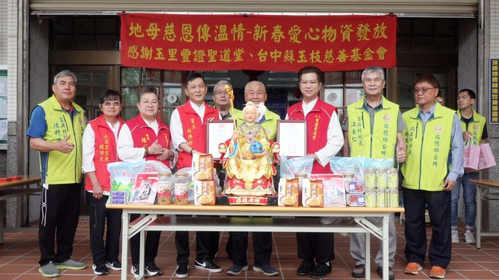 長期耕耘公益的玉里豐證聖道堂與財團法人台中市私立蘇玉枝社會福利慈善事業基金會,今(28)日上午共同前往花蓮縣瑞穗鄉,捐贈272份生活物資,盼以實際行動關懷在地弱勢家庭。