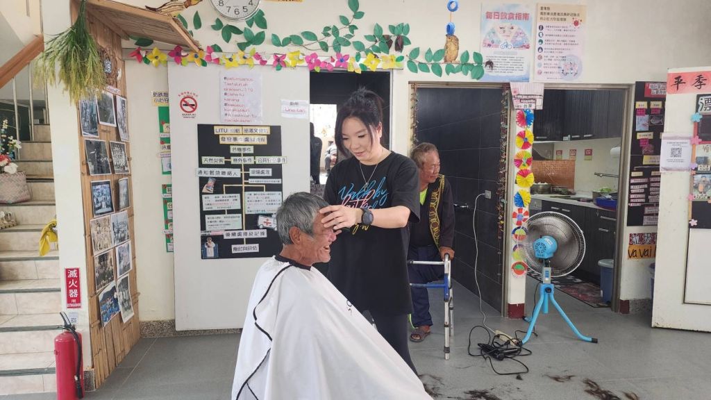 此次活動特別邀請來自臺北市的髮型師張立欣,遠道而來為村內30餘名長者及居民進行義剪服務。張立欣多年來持續深入偏鄉部落,以一雙巧手與滿腔熱忱,為山區居民整理儀容、傳遞關懷,其善行不僅讓長者煥然一新,也拉近彼此距離,深受村民喜愛與肯定。活動現場笑聲不斷,而最吸睛的,莫過於臺東縣警察局關山分局利稻派出所所長胡松俊仁親自上陣,不僅擔任活動主持人,更化身「宣導歌手」,以國語及布農族語雙語進行宣導,內容涵蓋「165反詐騙」、「交通安全」等重要議題。胡所長以輕鬆活潑的方式,將嚴肅的宣導融入歌聲與互動中,成功吸引長者專注聆聽,讓識詐與交安觀念深入人心。