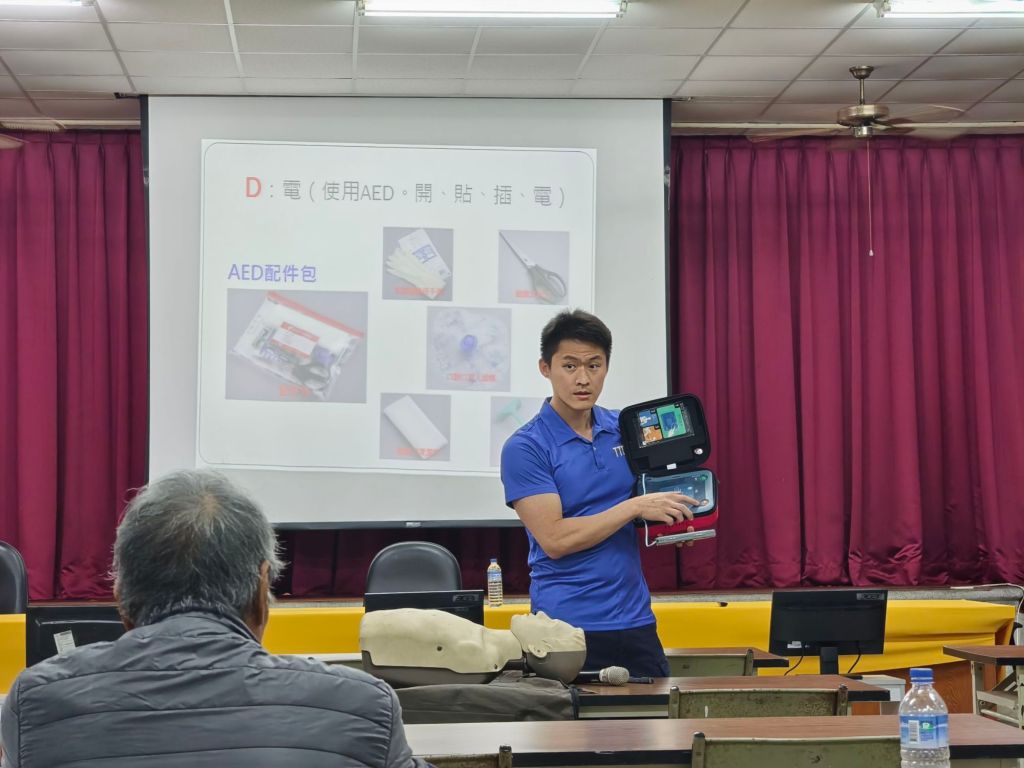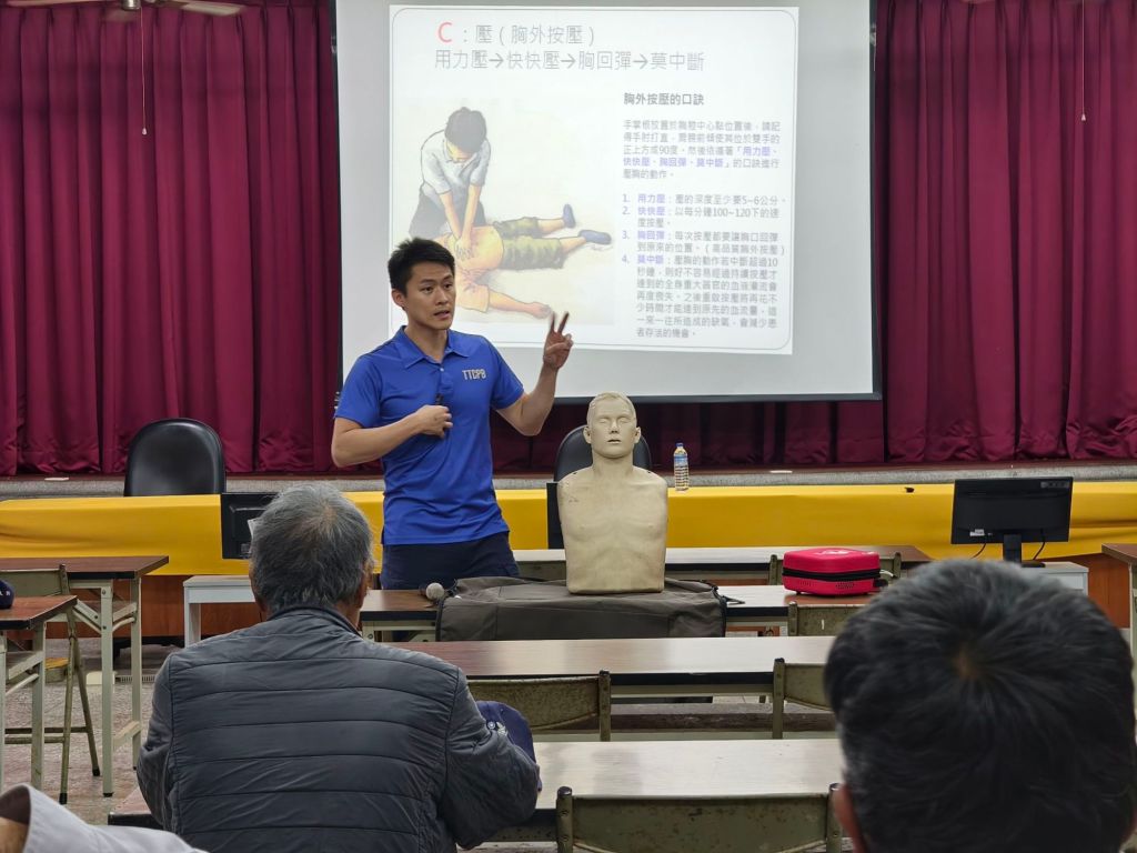 為提升民防及義警人員緊急應變能力,臺東縣警察局成功分局日前舉辦訓練課程,邀請教官劉宥宏擔任講師,針對交通事故現場及突發狀況中AED(自動體外心臟電擊去顫器)使用時機、操作要領及相關法律責任進行講解,民防及義警中隊成員踴躍參與。