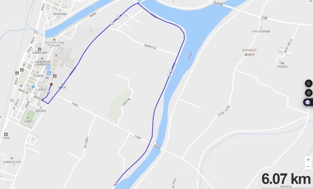 3、比賽路段:光復糖廠(起點) → 糖廠街8巷 → 糖廠街→ 廠部行政大樓 → 中山路一段 → 光復橋 → 流溝道路(嘉農溪西岸) → 流溝道路與台11線交會橋下(補給站+5K 折返點) → 中山路一段 → 光復橋 → 糖廠街 →光復糖廠(終點)。