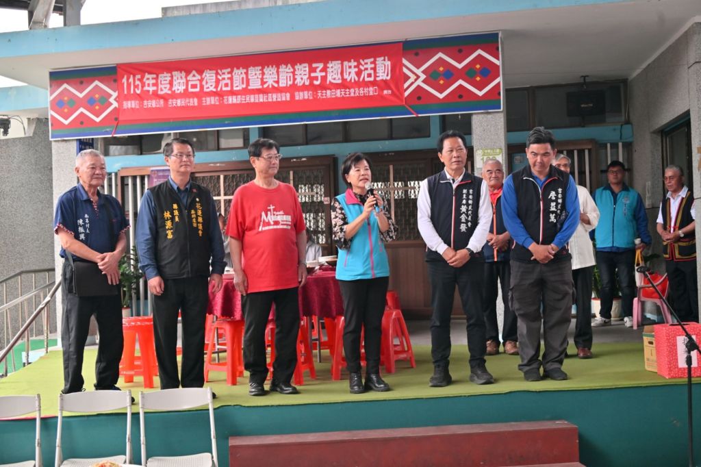 游淑貞感謝吉安鄉代表會,對公所在復活節或其他節慶中的經費挹注,讓吉安不論在人文、藝術、宗教與文化方面,都能順利推動,復活節的日子裡,大家共同歡喜迎接耶穌復活,代表著祥和與共榮。她說:「宗教帶給大家的是在信仰中,傳遞愛與關懷。宗教帶給人們愛與關懷,對社會照顧,有相當大的貢獻,也帶來了祥和與團結。」她同時肯定田埔聖母聖心堂主任司鐸田力強、天主教會總會長周秀雄、南昌會長李德輝、以及娜荳蘭社區營造協會理事長陳生妹等人,共同整合不同宗教與基層社團資源,促進部落發展和文化代代相傳的脈絡。