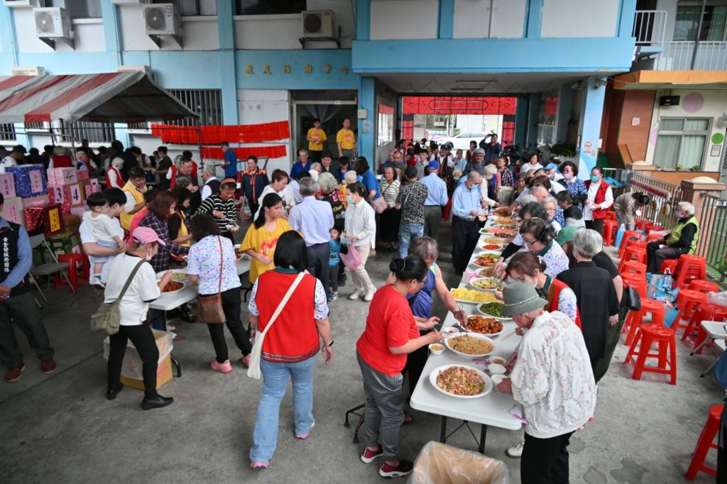 午餐饗宴前,田神父帶領教友們一同祈禱與降福,餐後登場的是「樂齡親子趣味活動」與「舞蹈表演」,透過肢體律動與團隊合作,讓長者與後輩在笑聲中增進感情,達到情緒管理與壓力釋放的效果。