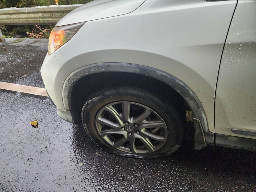 警方立即趕赴現場,發現1輛自小客車,車內共4人,因現場通訊不良,故員警先行協助載送施姓駕駛至可接收手機訊號處,並提供道路救援及輪胎業者聯絡方式,以利其後續處理。