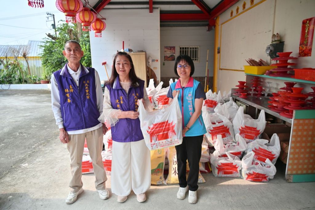今早的捐贈儀式在紫元宮前舉行,課長何書咏表示,鄉長游淑貞致力推動弱勢族群生活照顧與協助弱勢,積極推動各項弱勢政策與爭取社會善心資源,在社會資源挹注下,除減輕生活壓力,同時也為弱勢朋友們建構一個安全、平安及得以永續生活的祥和吉安。