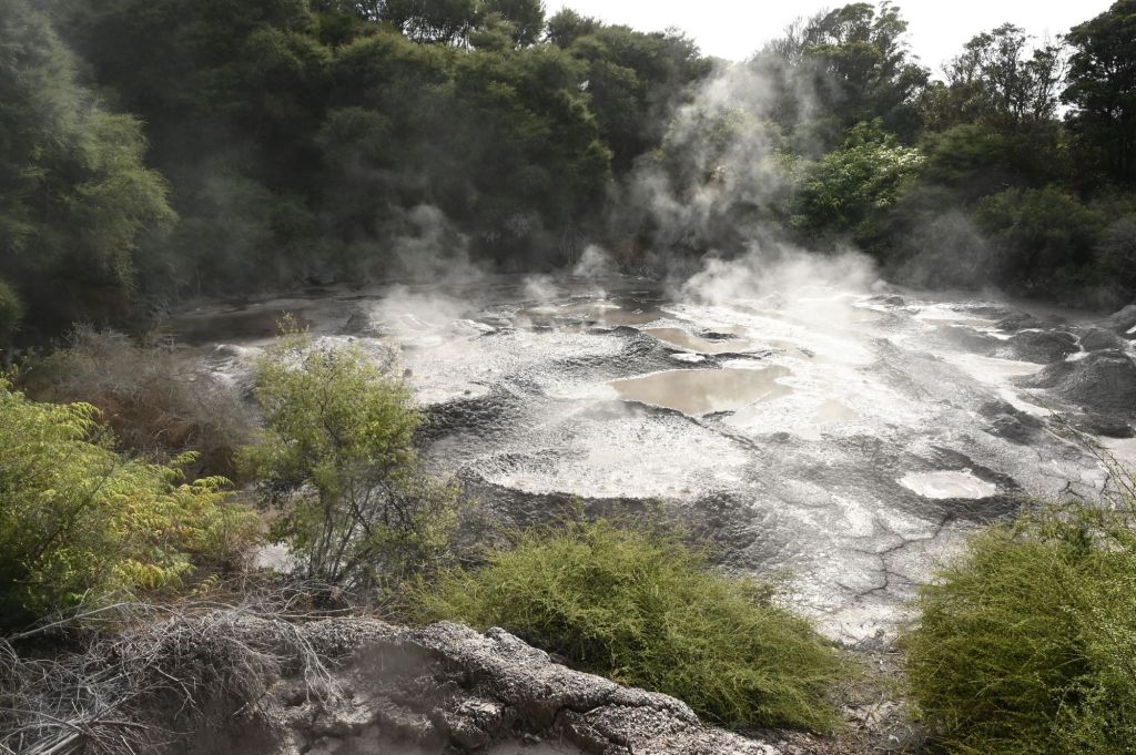 Te Puia以豐富的地熱景觀聞名,園區內擁有間歇泉、溫泉與泥池等自然奇觀,地表蒸氣繚繞,展現地底能量的持續活動。對毛利人而言,這些地熱現象不僅是自然景觀,更象徵大地之母的生命力與神聖力量,蘊含深厚的靈性意義,並長期運用於傳統烹飪與生活之中,展現人與自然和諧共生的文化價值。