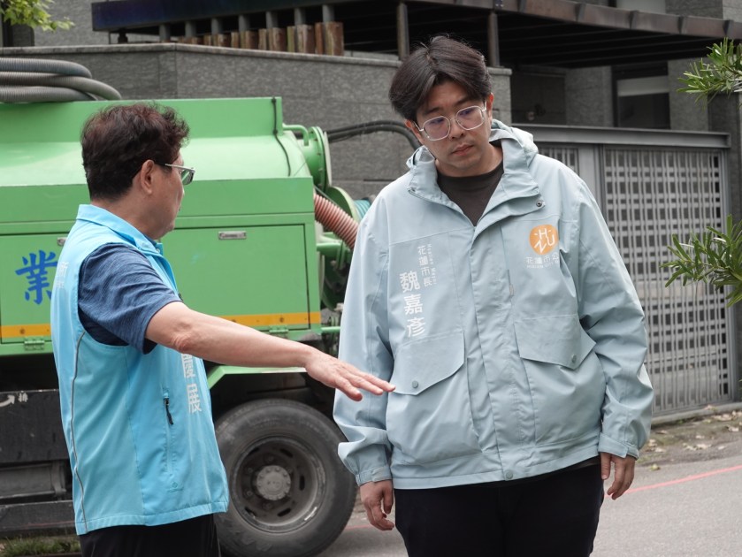 花蓮市長魏嘉彥昨(8)日下午偕同清潔隊長吳慶展前往國富28街實地視察清溝作業情形,關心施工進度與執行成果,並慰勞第一線清潔人員的辛勞。