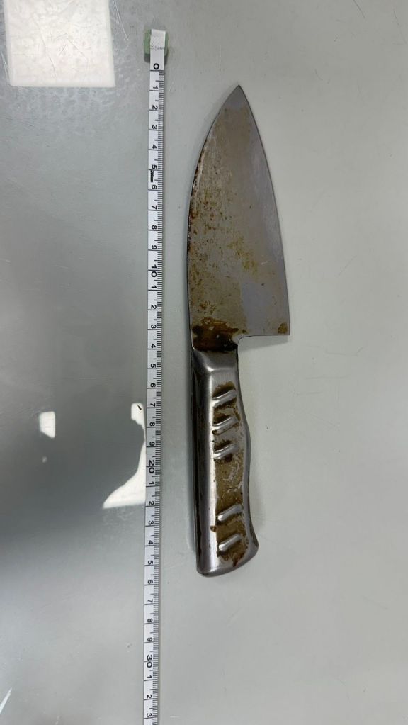 吉安派出所員警於當日下午,偕同消防救護人員前往吉安路二段處理民眾就醫案件。報案人楊姓婦人( 65 歲)起初稱家屬身體不適,卻在警消欲入內評估病情時,突然情緒失控口出惡言,並從廚房取出兩把菜刀欲攻擊執勤人員。儘管警方嚴正警告,楊女仍持刀逼近並向人員投擲刀械,其中一把擊中救護人員頭盔,所幸未造成人員傷亡,員警隨即使用強制力壓制逮捕,全案經訊問後,依涉嫌妨害公務罪移送花蓮地方檢察署偵辦。