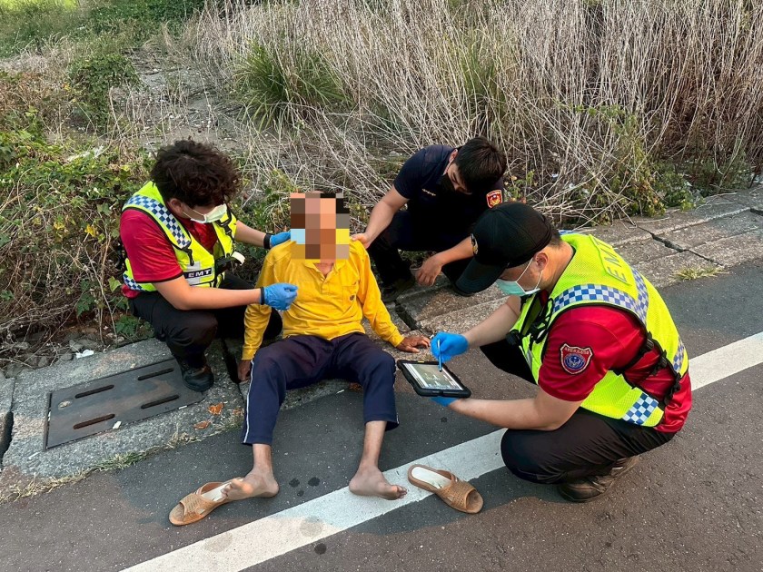 員警到場後發現老翁倒臥路旁,神情略顯疲憊,隨即上前關懷並耐心詢問情況。經了解,此名74歲柯姓老翁家住九如鄉,當日騎乘自行車外出訪友,返家途中因體力不支,將車輛停靠路旁欲稍作休息,未料一時失去平衡不慎倒地。所幸老翁意識清楚且無明顯外傷,119救護人員到場檢視後確認生命徵象穩定,表示無需送醫。警方隨即聯繫其女兒到場接返,家屬抵達後對員警及救護人員的即時協助深表感謝。