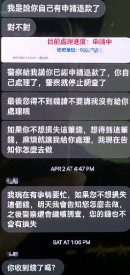 據了解,羅男於日前在社群平台上以新臺幣1萬元購買iPhone 15 Pro Max手機,不料前往超商取貨拆封後,內裝竟是兩包價值低廉的濕紙巾,驚覺受騙的羅男隨即奔向湖內派出所求助。當時警員黃奕智先行安撫其激動情緒,並耐心指導羅男完成線上退貨及退款申請;原以為案件已告一段落,沒想到4日後,羅男神情慌張地二度踏進派出所並透過翻譯軟體表示,詐騙集團竟利用先前取得的羅男個資,假冒其身分撥打給貨運公司,擅自「取消」退貨申請,企圖阻止羅男領回退款。