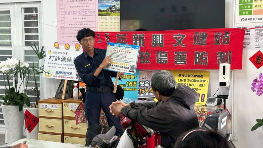 為提升銀髮族交通安全觀念及防範詐騙意識,臺東縣警察局關山分局池上聯合所於今(11)日9時,前往池上鄉新興村文健站,辦理「交通安全及反詐騙宣導」活動,針對在地長者進行多元且貼近生活的安全宣導,現場互動熱絡,成效良好。
