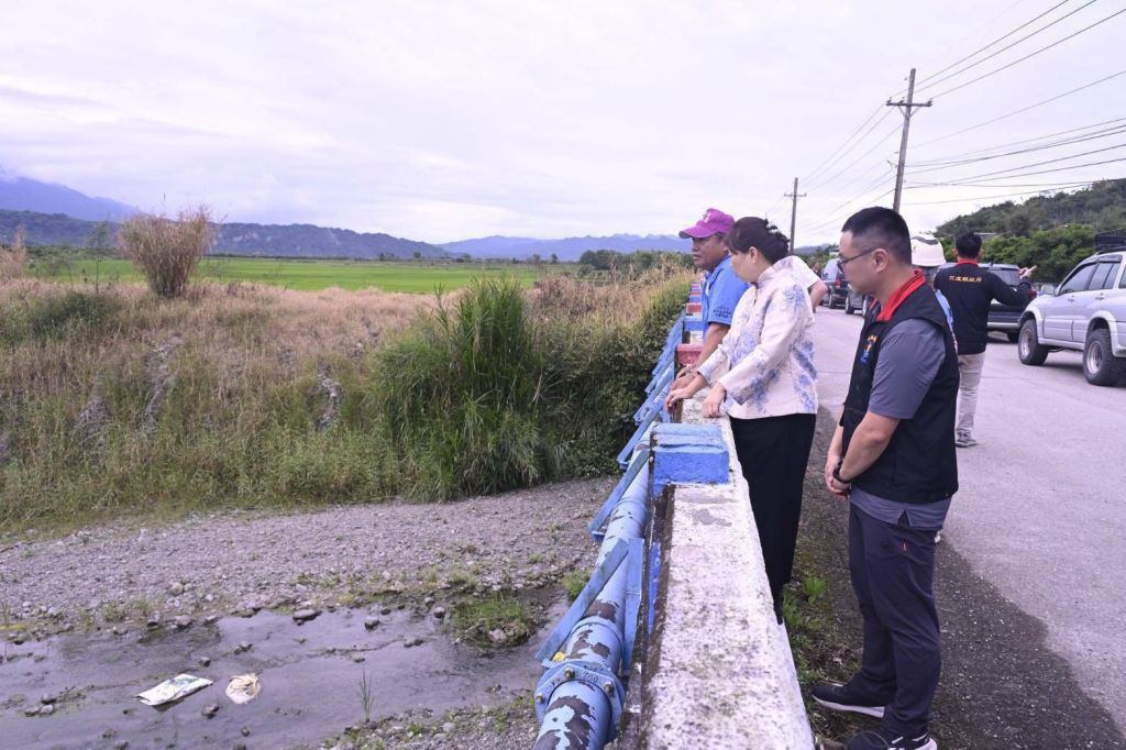 為提升玉里鎮排水防洪能力,降低豪雨期間洪水漫溢及河岸侵蝕風險,花蓮縣長徐榛蔚日前在秘書長饒忠、立委傅崐萁辦公室主任潘俊霖、觀音里長陳金寶、松浦里長陳錦忠陪同下前往玉里鎮,視察觀音排水及杜風排水工程,責成縣府團隊務必落實控管,確保工程如期如質完成,發揮防洪保護效能,確保鄉親生命財產安全。