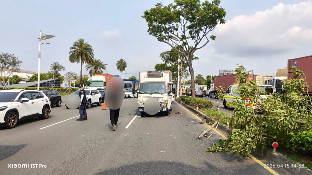 115年04月15日14時27分許,高雄市政府警察局小港分局小港派出所、小港交通分隊接獲通報,於小港區中山四路北上快車道有交通意外事故 ,旋即派員到場處理,並測繪交通意外事故現場圖及指揮管制與疏導交通。