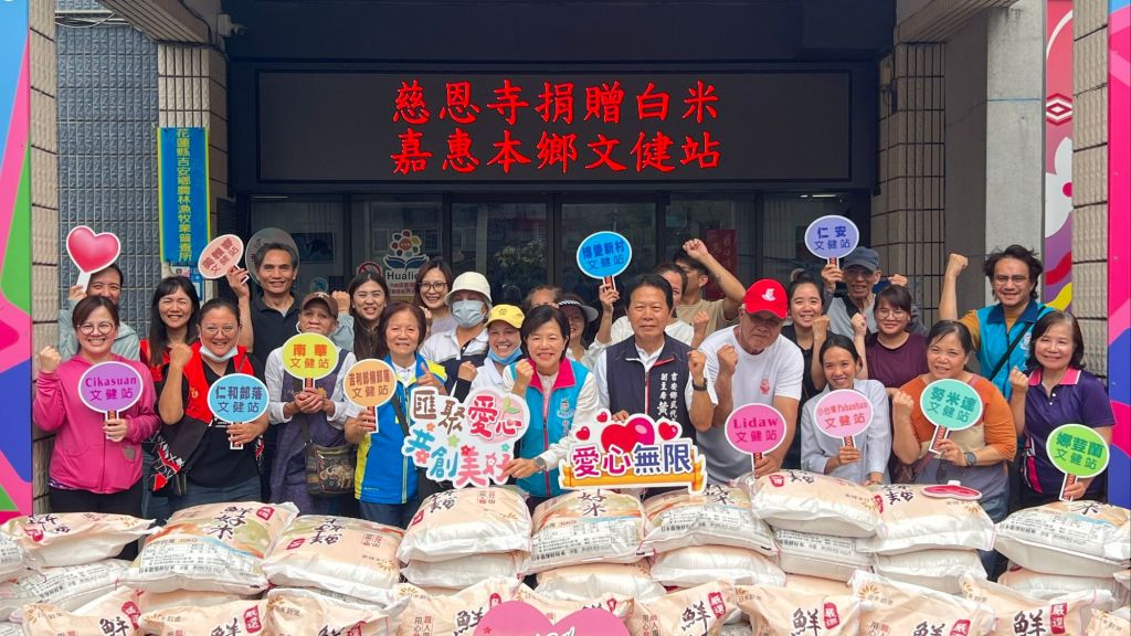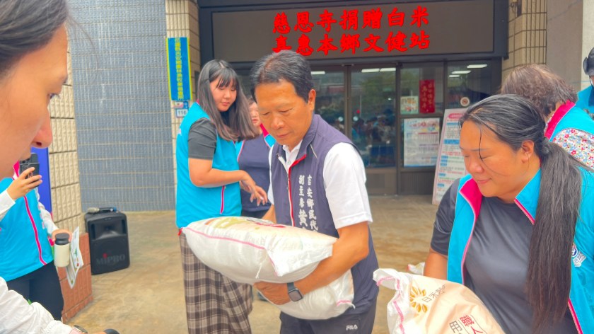 花蓮縣吉安鄉今日充滿溫馨善舉!慈恩寺透過吉安鄉公所平台,捐贈優質白米給鄉內各原住民文化健康站。吉安鄉民代表會副主席黃金發不僅到場響應,更當場「化身志工」,挽起袖子親自將一袋袋沉甸甸的白米搬運上車。他滿頭大汗卻笑容滿面的舉動,展現出十足的親和力與行動力。