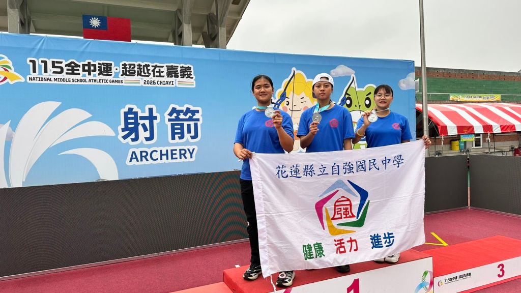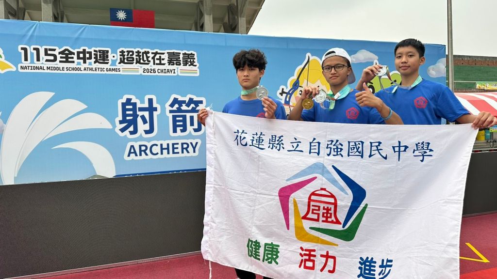 此外,在反曲弓男生團體賽方面,自強國中同樣有優異表現,由游凱淳、廖力玄、謝明君組成的隊伍奮戰到底,最終奪得銀牌。選手們在比賽中展現專注與韌性,面對強敵毫不退縮,為花蓮縣再添一面獎牌,也為自身運動生涯寫下重要里程碑。
