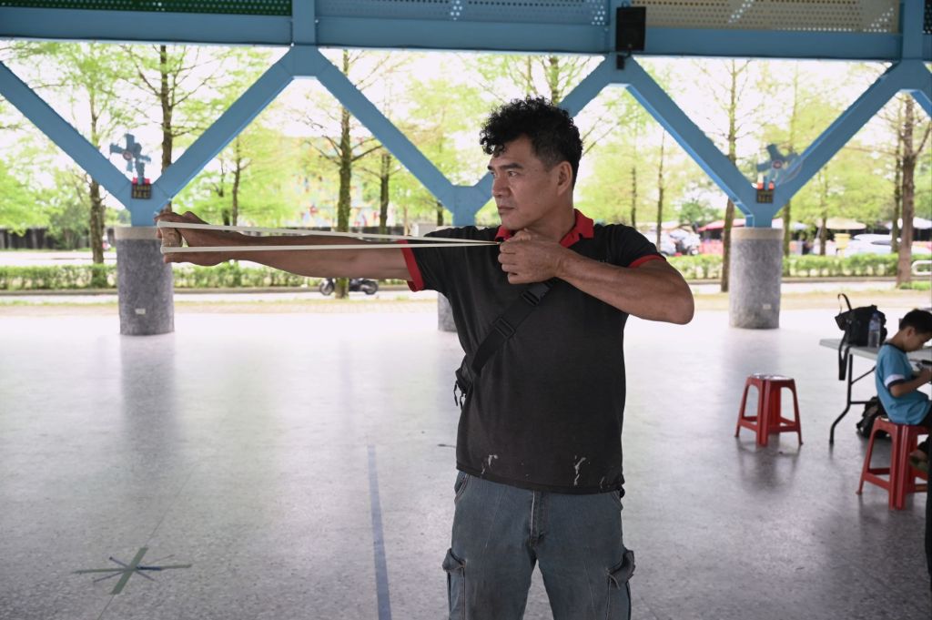 活動現場由學員展示彈弓製作與操作技巧,從材料處理到成品完成,完整呈現傳統工藝流程,也讓民眾更深入認識彈弓文化的獨特魅力。