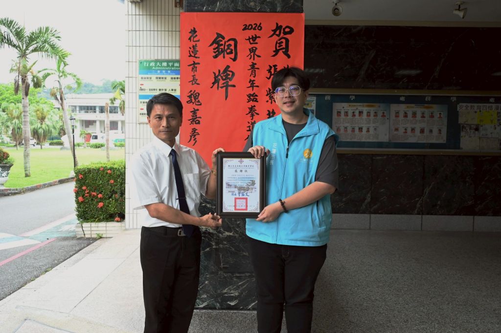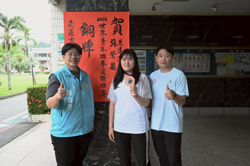 花蓮市長魏嘉彥今(21)日前往國立花蓮高級工業職業學校,親自為在「2026世界青年跆拳道錦標賽」中勇奪銅牌的張紫芸同學貼紅榜表揚,肯定其為國爭光、為花蓮爭取榮耀的優異表現,並頒贈新臺幣六千元贊助金,以實際行動表達鼓勵與支持。