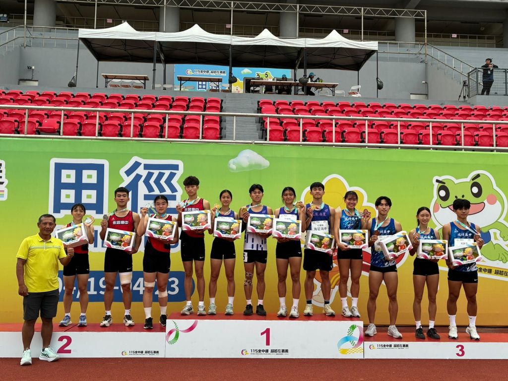 田徑接力項目同樣表現亮眼,海星高中在高中組4×400公尺混合接力賽中,由高二蘇祥奕、伍毅軒、謝冠瑜及高一蘇若妍組隊,以3分30秒72奪得金牌,距離大會紀錄僅差1秒,展現團隊默契與強大實力,明年繼續挑戰大會紀錄!此外,花蓮高農汪鈺錡於高男組110公尺跨欄奪得銀牌,為花蓮再添佳績。