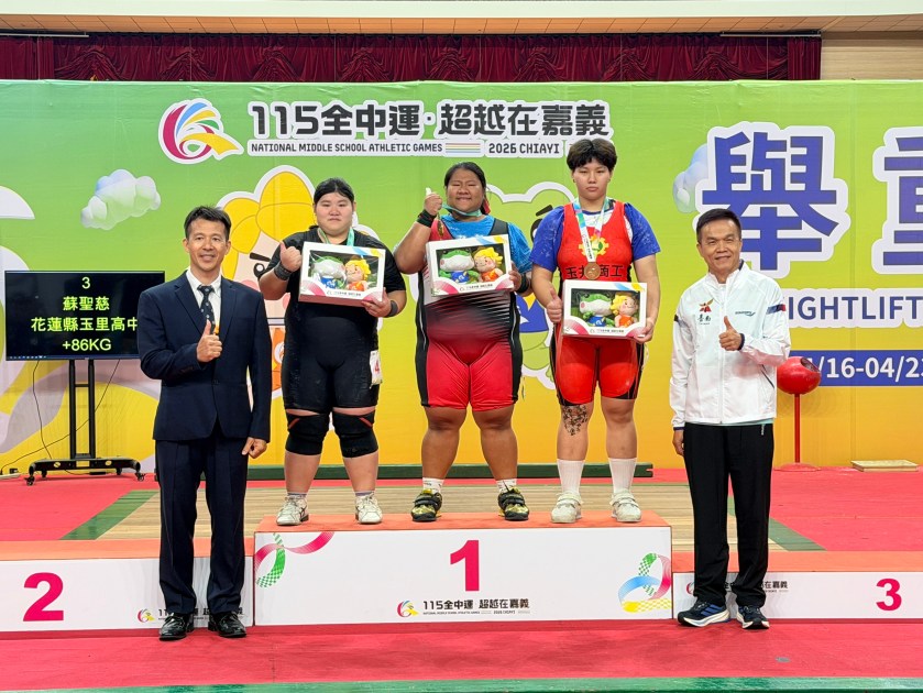 舉重賽場方面,玉里高中蘇聖慈於高女組86公斤以上級賽事中再度展現王者實力,以抓舉96公斤、挺舉132公斤、總和228公斤奪得金牌,完成全中運三連霸,並收下個人第四面金牌。蘇聖慈來自卓溪鄉布農族,過去曾因訓練受傷對大重量產生心理陰影,但她勇敢面對挑戰,在關鍵時刻成功舉起132公斤逆轉勝出,奪金瞬間激動落淚。這面金牌不僅象徵實力,更代表她突破心魔、重拾信心的歷程。她也將代表臺灣前往埃及參加世界青年舉重錦標賽,備受各界期待。另外,花蓮體中洪嘉軒在高男組71公斤級表現亮眼,以抓舉110公斤、挺舉140公斤、總和250公斤獲得銀牌。