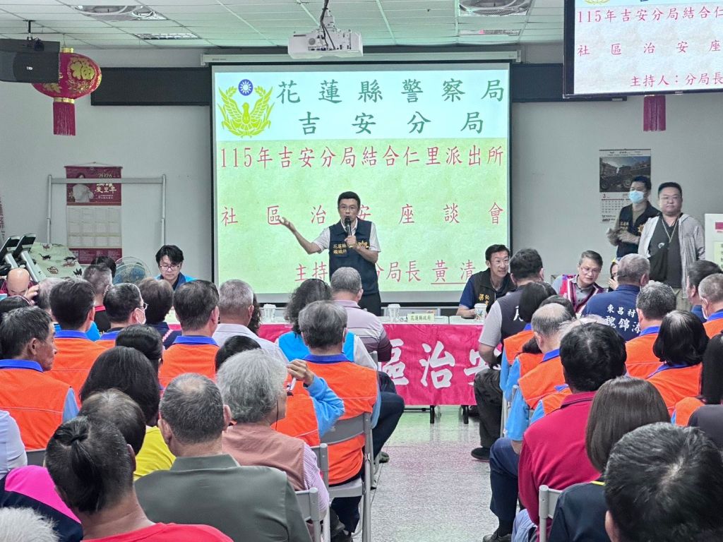 花蓮縣警察局吉安分局於昨(22)日晚間,在吉安鄉東昌村活動中心隆重舉行「115年度吉安分局結合仁里派出所社區治安會議」。此次會議為分局年度規模最大的一場基層座談,由分局長黃清暉親自主持,現場匯集縣政府、議會、鄉公所、鄉代會及地方村長、部落頭目等各界要角,更有超過170位在地民眾參與,展現出地方對治安維護的高度重視與支持。