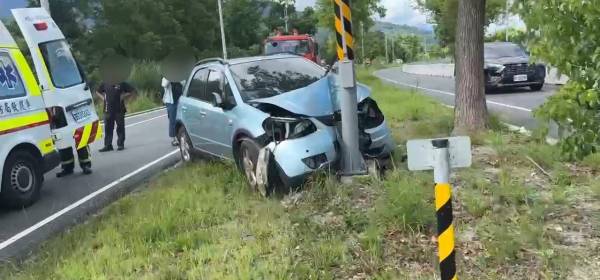 臺9線328.5公里處 自小客車自撞電桿交通事故 四人輕傷送醫無礙