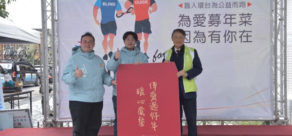 盲人環台公益路跑抵花 市公所特設補給站以行動相挺