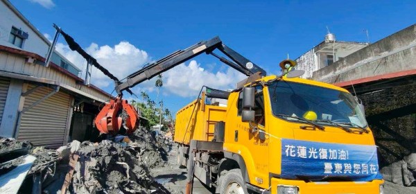 臺東縣出動抓斗車、清溝車馳援 攜手花蓮投入光復災區環境復原