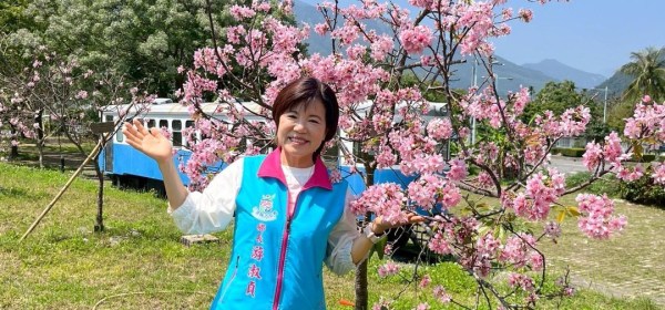 吉安鄉干城鐵道櫻花公園繁花盛開 游淑貞邀鄉親掌握賞花期親情同遊